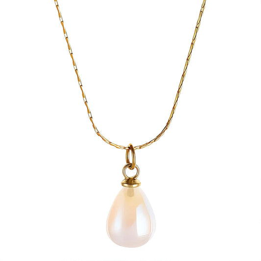 Pearl Drop Snake Chain Necklace, 18K Gold Plated Steel