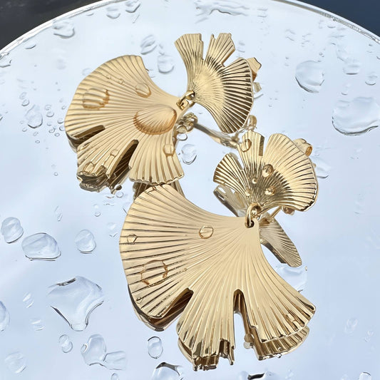 Ginkgo leaf Earrings, 18K Gold Plated Steel
