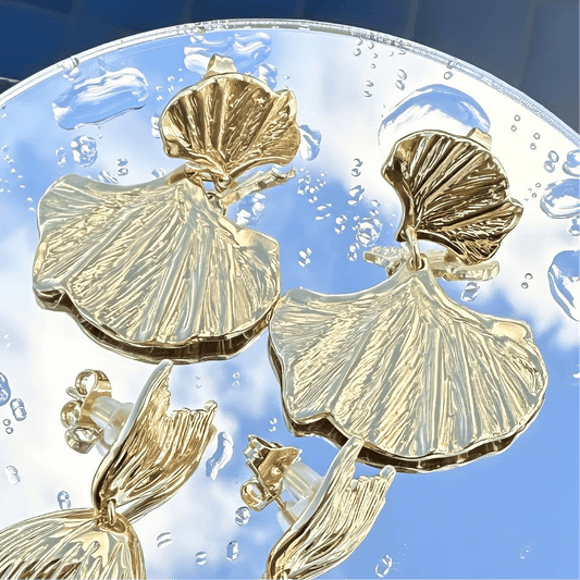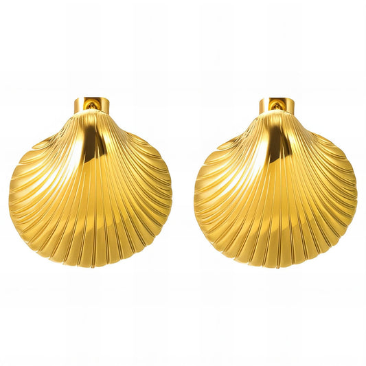 Scallop Seashell Earrings, 18K Gold Plated Steel