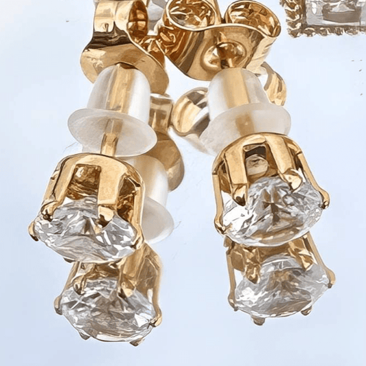 Cubic Zirconia Stud Earrings, 18K Gold Plated Steel