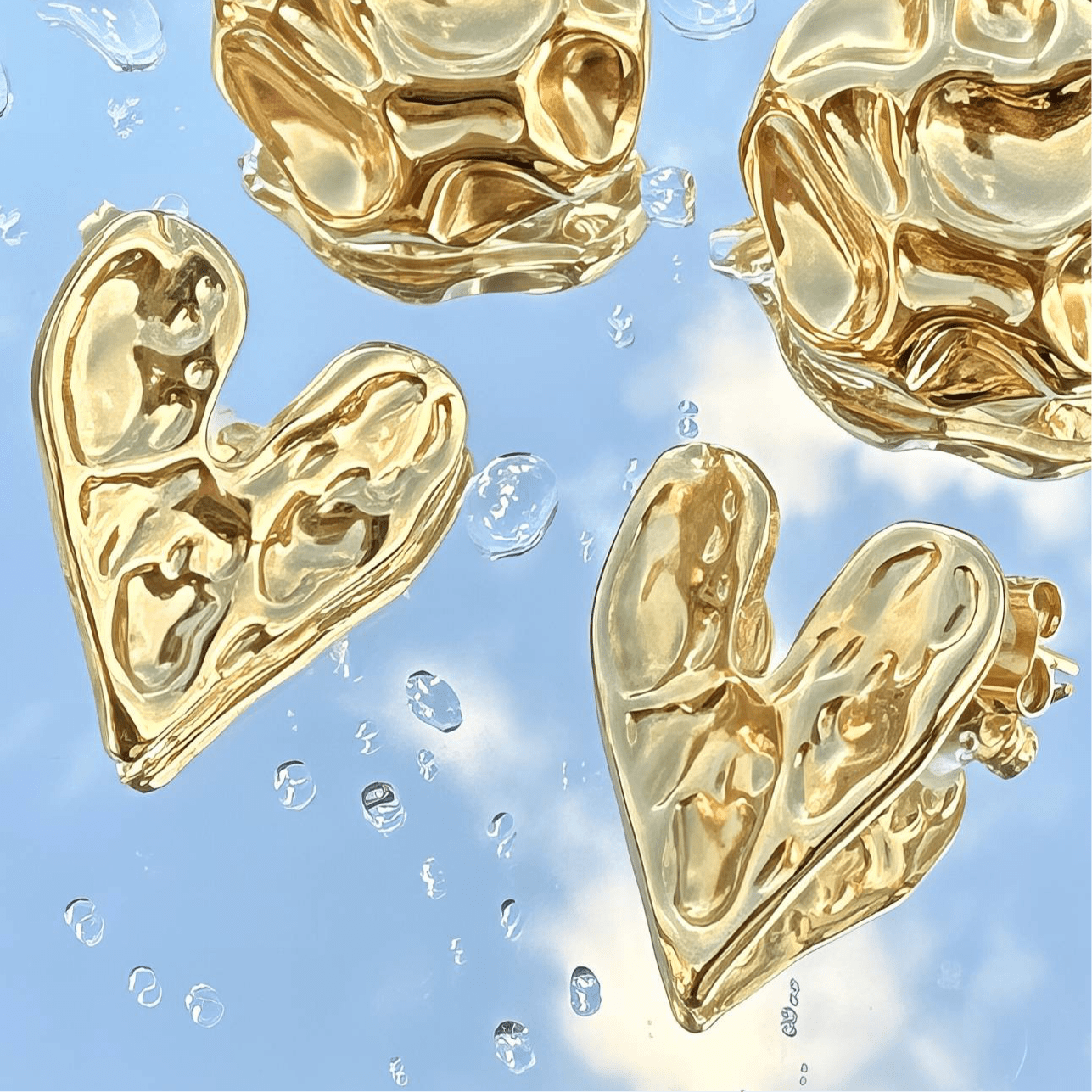 Hammered Hearts 18K Gold Plated Stainless Steel Earrings