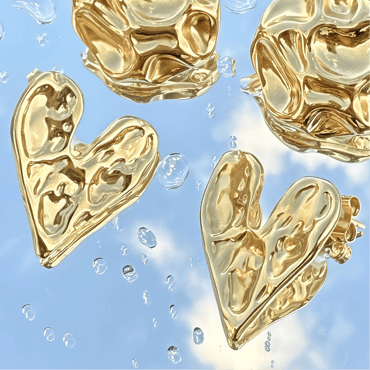 Golden Heart Earrings, 18K Gold Plated Steel