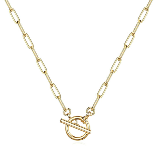 Paperclip Chain Necklace with Toggle Clasp, 18K Gold Plated or Silver Steel