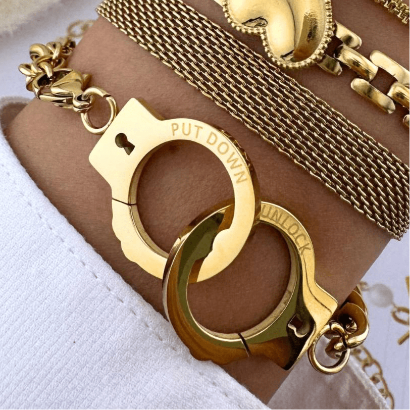 “Handcuff” Clasp Bracelet, 18K Gold Plated or Silver Steel